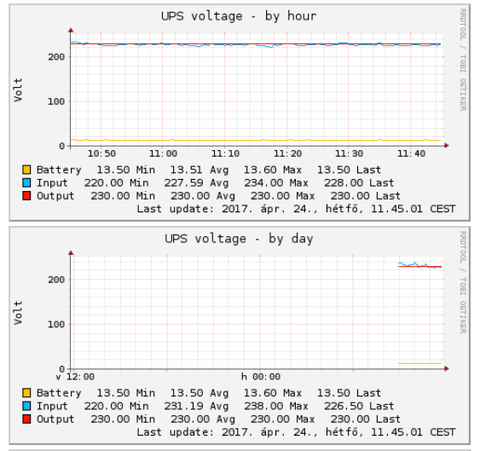 device.model: Back-UPS CS 350és vannak grafikonok, kijelez mindent, leállítási tesztet még nem csináltam, de hamarosan azt is kipróbálom.