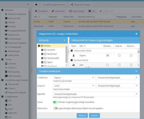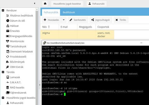 - docker-hez létrehozok az OMV-ben egy új felhasználót egyszerűség kedvéért legyen stigma vagy dockeruser.