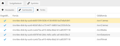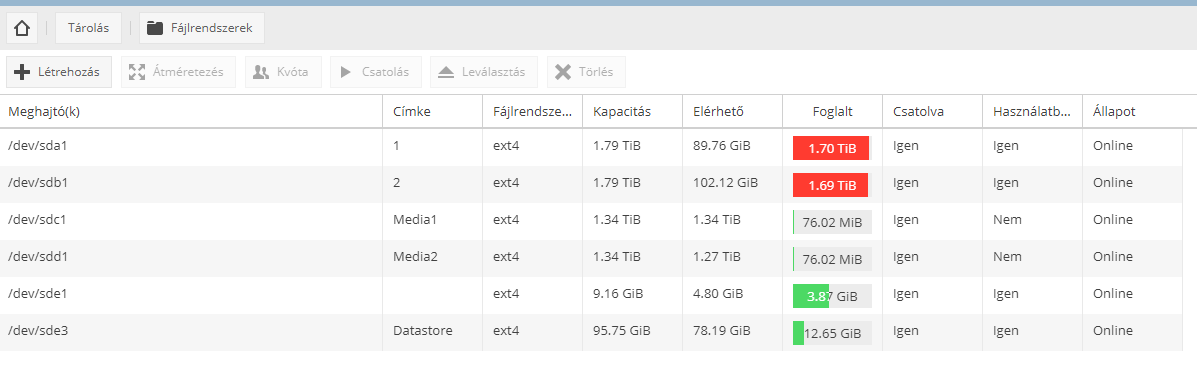 Média nevű megosztás (2x4 TB lemez LVM-mel összefűzve egy 8 TB kötetté), ezen vannak a Film, Sorozatok Zene stb mappák.