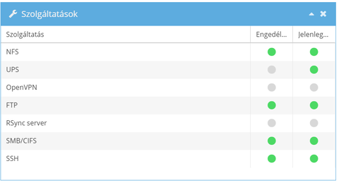 Belső hálón van NFS megosztás androidos boxnak, DLNA egy LG TV-nek, masszív torrent, hálózati nyomtató szkennelő mappája, SMB a gépeknek, valamint Plex, ami egy másik városban lévő TV-re streamel.