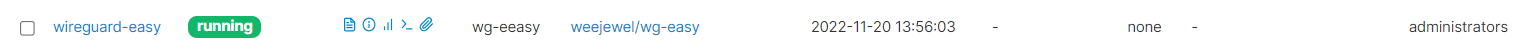 Megcsináltam, látszólag ok, hibaüzenetet nem kapok, csak egy bazi hosszú karakersort. Valszeg fut a konténer, mert kezelni tudom (leállítani, indítani), ennek ellenére a megadott porton nem érek el semmit, illetve az /etc alatt sem találom a wireguard mappát (konkrétan sehol nem találom a wireguard mappát)