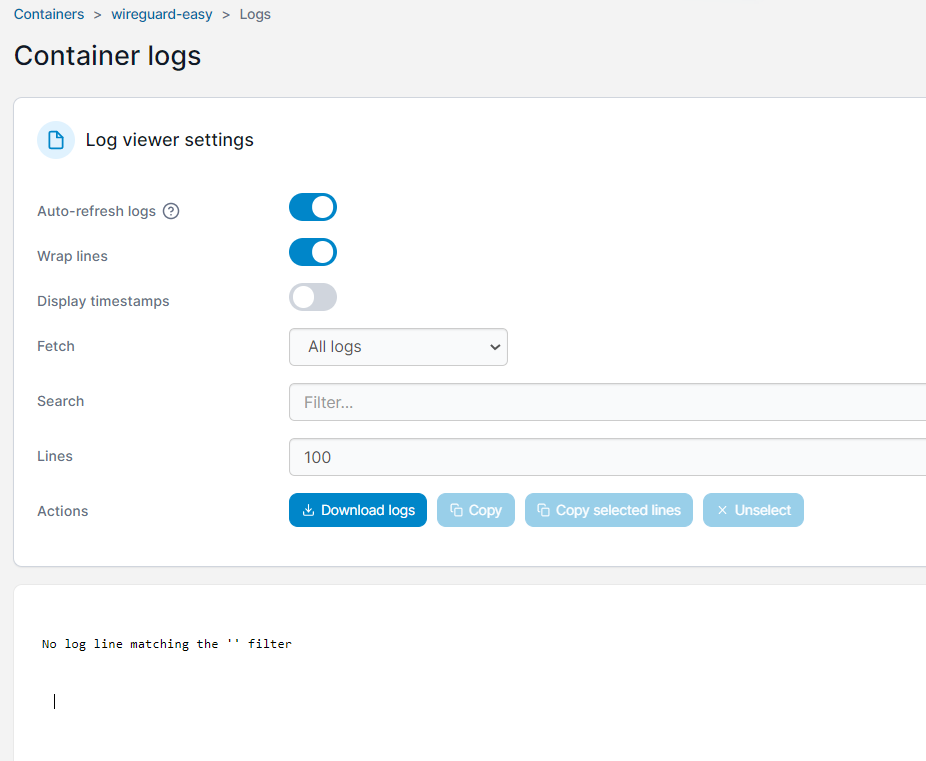 version: "3.6"services:wireguard-easy:container_name: "wireguard-easy"entrypoint:- "docker-entrypoint.sh"environment:- "WG_HOST=valami.sytes.net"- "PASSWORD=Valami"image: "weejewel/wg-easy"ports:- "51820:51820/udp"- "51821:51821/tcp"restart: "unless-stopped"volumes:- "/srv/Datastore/Docker/Wireeguard/config:/etc/wireguard"Ha tudnál sehíteni abban, mit, milyen logokat nézzek, hogy ellenőrizzek, azt megköszönöm. Ha a hálózatról kell bővebb infó, azt is mgadom, de jó lenne a végére járni.