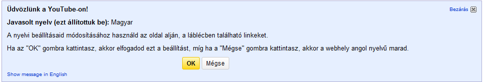 Youtube látom ország által magyarosított lett, hogy lehet visszalőni, angolra?