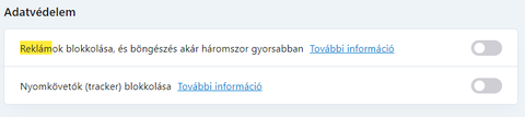 Igen, az Adatvédelem alatt a Reklámok blokkolása, és böngészés akár háromszor gyorsabban és a Nyomkövetők (tracker) blokkolása opciók ki vannak kapcsolva.