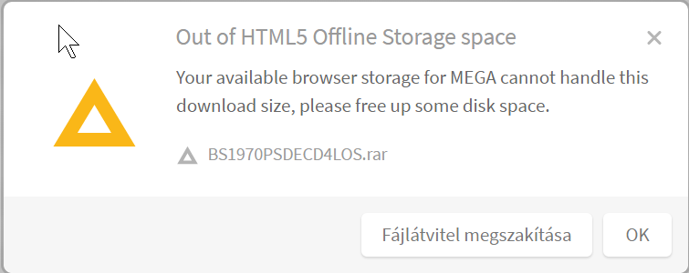 A Mega-án ezt az üzenetet kaptam, letöltés közben operával. Tudja valaki értelmezni? A letöltés megállása a mega vagy az opera rossz beállítása miatt van? Mit kell csinálnom? A lemezen ehhez bőven lenne hely. A 41.0.2353.69-es Opera verziót használom.