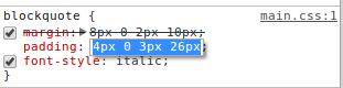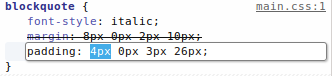 De nem is 4 különböző érték lesz ott, csak 1. Az, amit szerkesztesz akár globálisan, akár lokálisan. Ha az összes többi padding 10, kivéve a left, ami 8, akkor ne jelölje már ki nekem az összeset.