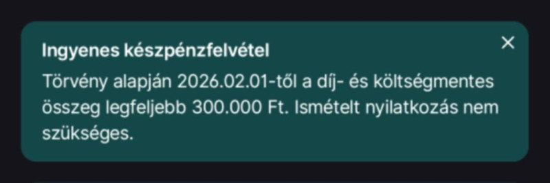 Szeretnék autómatából felvenni pénzt. Jól tudom, hogy ez jelenleg csak 150.000Ft-ig ingyenes?