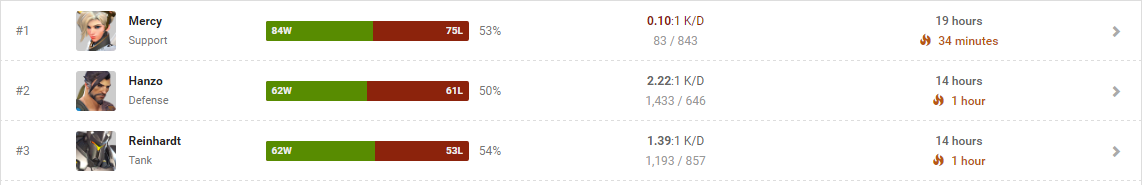 Fel is mentem 2163-ről 2304-re ezalatt az idő alatt és egyelőre így nem éreztem, hogy visszafognám a csapatot. Ez a szint még megy, legalábbis D'vával. Remélem nagy nerfek nem lesznek.Erről viszont eszembe jut egy cikk amit ma olvastam, Reinforce írta (Team Rogue, egyik legjobb Reinhardt): [link]