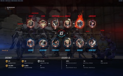 Szóval hoztam egy soldiert és lám: döntetlen. Sőt, majdnem win, úgy hogy az ellenségnek 5x több támadóideje volt.Néha rohadtul utálom, hogy nincs három belőlem. Ha én healelek, szar a dps, ha dps-ezek, akkor a tankok meghalnak instant, mert nincs jó heal, ha tank vagyok nem kapok healt, mert mercy full hps pharah után repked, persze damage boostra kapcsolás nélkül... De tényleg, ritkán látok mercy-t damage boostra kapcsolni, nem tudom, ilyenkor mi jár a fejükbe?
