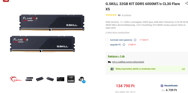 Egyelőre pl. Alzán vannak 32-es kitek 80 körül, bizonyos márkák eltűntek, Gskill 115 felett akad. De nem túl biztató a helyzet. Ahol kimerültek a készletek, ott ugranak az árak.