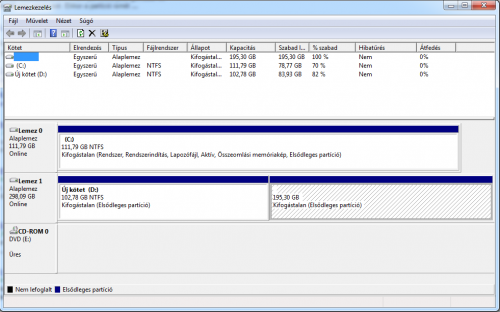 ha mindent jól csináltál, akkor lesz a rendszer számára fenntartott, a 80GB-os C, a 60GB-os D és a maradék GB-os E (vagy amilyen betűjelet épp kapni fog)