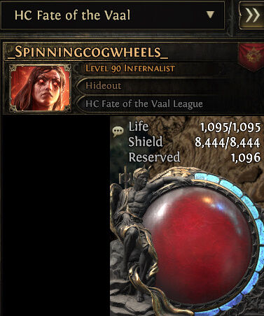 Most látom, hogy eléggé kiherélték a shotgun buildemet azzal, hogy kivették a ricochet III support gemet, bár a frag shot alap átütését megnövelték 2-ről 5-re. Így már nem is olyan rossz, persze a pierce all targets-től messze van és a falról sem fog visszapattanni a lövés. Ugyanakkor a build elég erősen épített a rage-re, halmozni és tartogatni a Death Articulated kezessel (jó drága volt előző szezonban) plusz a Berserk spirit gemmel tovább tápolni a sebzést. Csak ugye szopó volt a folyamatos kb 10% hp loss/sec, szenvedtem is rendesen, mire megoldottam, hogy ne fogyjon folyamatosan az életem.