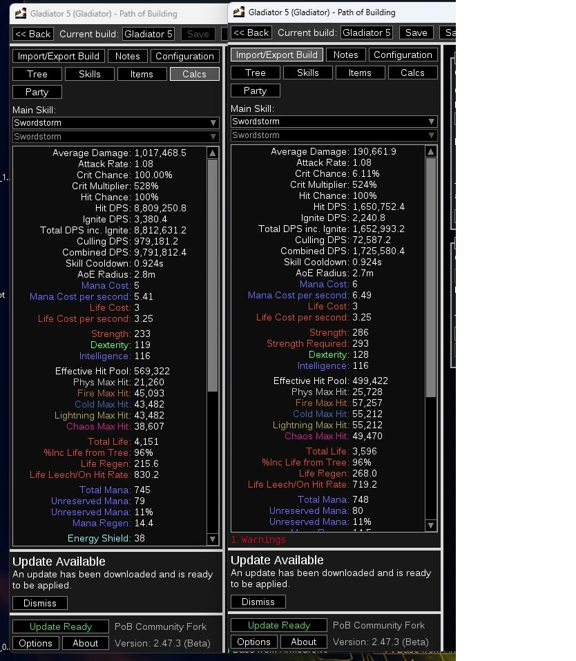 Adott egy Swordstorm build, amit szinte teljesen sikerült lemásolni, kis eltérések vannak statokban, de semmi jeletős, mégis amiről másoltam annak a karinak 10-20 szor több dmg-e van mint az enyémnek és nem értem. A skillfa ugyan az, annyi a különbség, hogy 2 szinttel kisebb az enyém, de semmi olyan skill nincs amitől ekkora különbség lehetne.. Az itemek, gemek ugyanazok, mégis hatalmas a különbség.