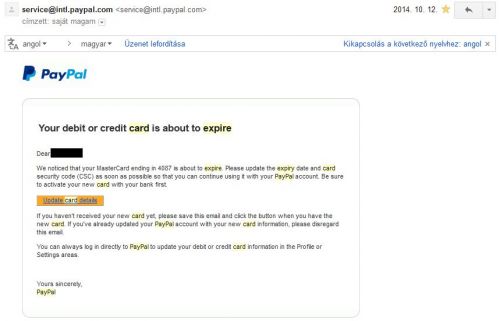 Nekem is volt egy vevőm... eladtam valamit... apróhirdetés... magyar, de külföldön él... mondja nincs magyar számlája, stb. de PayPal-on tudná küldeni... mondom, OK, de csakis úgy, ha ő állja a költségeket.. vagy azt jelöli meg... vagy annyival többet küld...