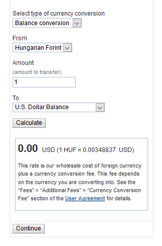 Jazz: Az lesz amit választasz. Vagy átkonvertálja az euródat, vagy választhatod a kártyát mint forrást. Az utóbbival valószínűleg jobban járnál mert a PP elég kedvezőtlenül vált. Csak arra figyelj, hogy a bankod váltson, mert kártyás vásárlásnál is konvertálhat a PP, és akkor megint ott vagy ahol a part szakad.
