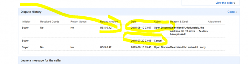 A disputnál még csak az eladóval beszélsz és az aliexp. nem avatkozik bele, tehàt, ha pl. a szállítási időt kitoljátok az eladóval megegyezve akkor bezárod a disputot és újra tudod nyitni, ha az új időpontra sem történt meg a szállítás.