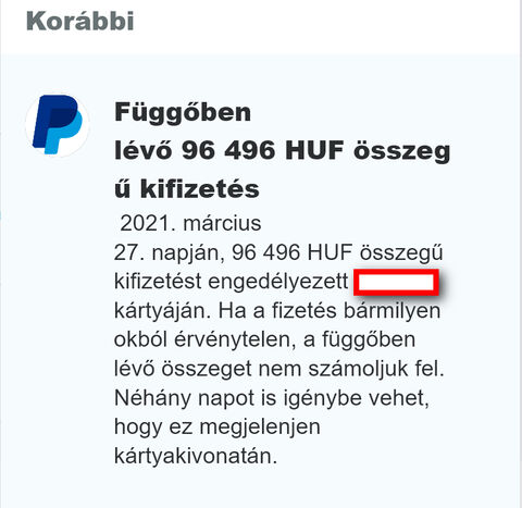 "Nem vonta le, zároltként van még mindig a bankban és ha nincs a PayPal fiókodban (ugye oda belépve történt a fizetés) könyvelési tétel akkor ők semmit nem küldtek a bankod felé."