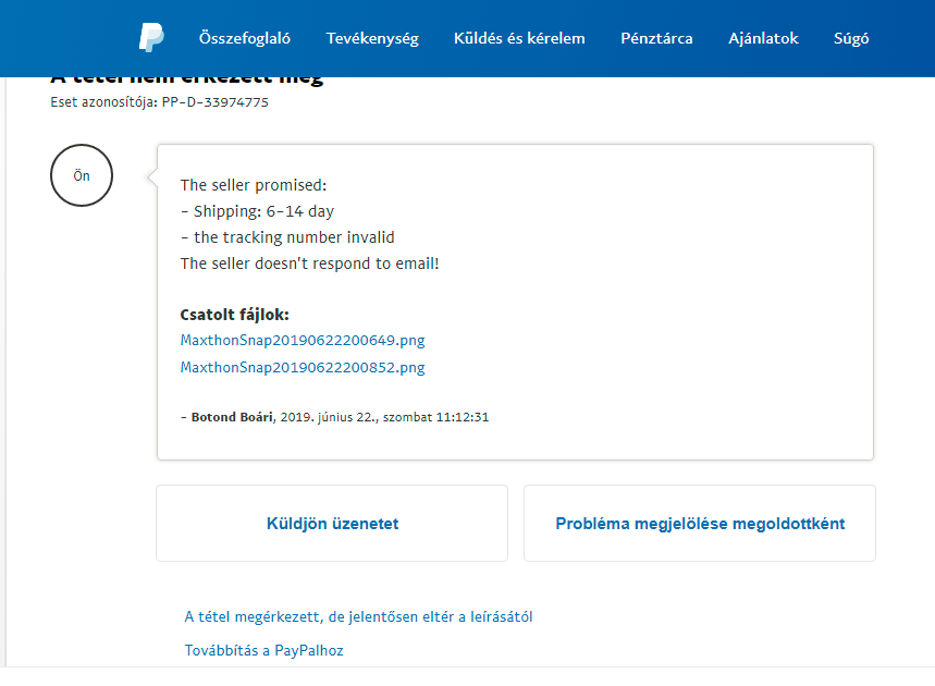 Igen, azt tudom, hogy ha belépek, akkor van értesítés, de nem lépegetek be naponta a PayPal-ba, gondolom, ahogy másnak is, ez nem napi rutin. Az eladó válaszolt, és ha nem reagálok rá, lehet, hogy nem nekem adnak igazat.