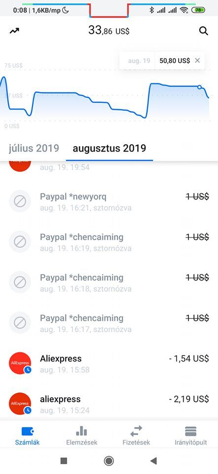 Tegnap este az Ebayen vásároltam 568$-ért, és Paypalba belépés nélkül le is leemelt 532! $-t a bankkártyámról (gondolom azért, mert volt valamennyi a Paypal egyenlegemen, ugye?). Csakhogy az a baj, hogy nem a megfelelő kártyáról. Ezért rögtön meg is kértem a törlést az eladótól, amihez hozzá is járult. Ma már azt látom a fiókomban, hogy refund 568$, balance 35,66. Hogy is van ez? Akkor a bankomba vissza is megy az 532$, amit levontak, és a maradék az visszakerült balance-ra, mai a vásárlás előt rajta volt?