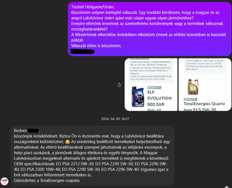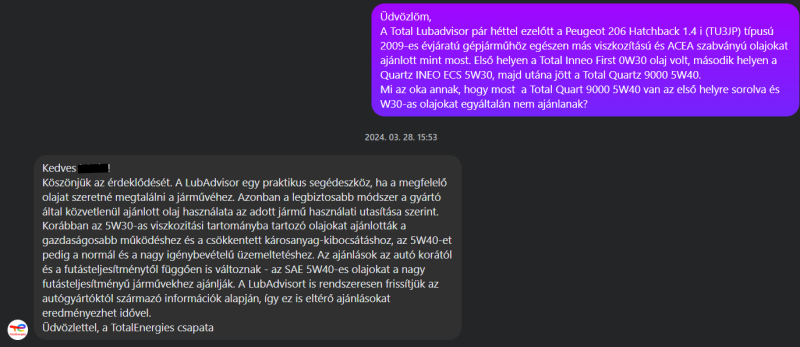 Az utolsó bekezédsre pedig: Erősen kétlem, hogy származna bármennyi piaci előnye a Totalnak abból ha olyan olajat ajánl a usereknek amin kissebb a haszna.