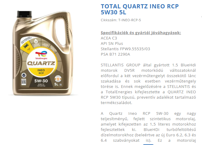 Újabbakba pedig már 5w30 rcp, legalábbis az 508-ba már azt raktam