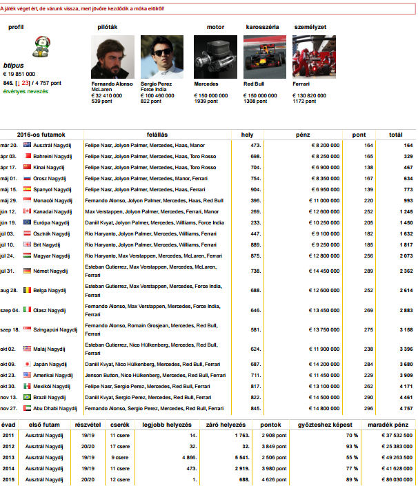 Többen évek óta játszunk ilyesmi témájú webes menedzselős-tippelgetős játékkal, és muszájból többet is kipróbálva, azaz megvannak a jól megalapozott igények ami alapja lehet egy sikeres, könnyen használható F1 liga szerű játéknak.