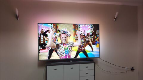 Nem árt neki a nagy, lehetőleg fehér falfelület, hogy szépen ki tudja futni magát. A nappaliban is próbát tettem vele először, ha már lúd, legyen kövér alapon, aztán rájöttem, hogy ott a TV mellett álló két komód-falig toltan- szépen be is szűkíti az Ambilight lehetőségeit.
