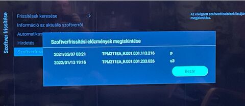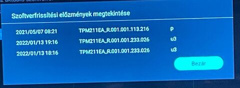 igen érdekes hogy szoftvernél a sima menüből ugyan azt a szoftvert írja 01.13 dátummal pedig ugye ma volt "frissítve" a szerviz menüben pedig az előző rajta lévőt és az is lehet rajta mert ugye már telepítés közben is írta hogy van friss fw majd készenlétbe telepíti. Hát nem fogja mert jól kikapcsoltam az automatikus telepítést. Most egy kicsit had menjen így. Azt írták 48 órát próbáljam előjön-e a hiba, de szerintem kivárom a hétfőt a válasszal. hétvégén nem is leszünk itthon így csak a ma és a holnap este fog menni a tv.