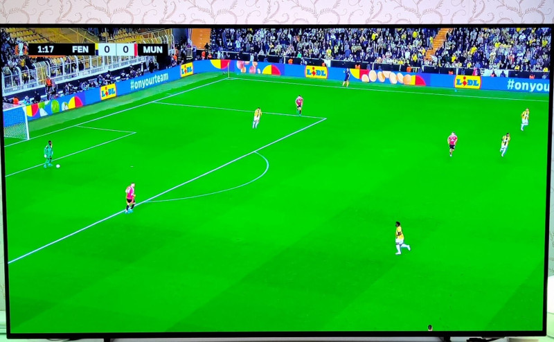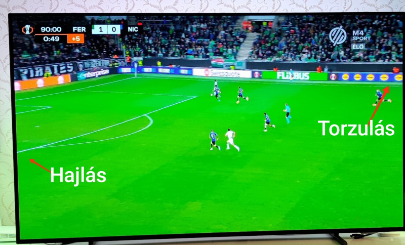 Nemrég vásároltam egy 55OLED718 TV-t, és TV adások esetén att veszem észre, hogy a kép széle "hajlik". Készítettem egy képet a Fradi meccsről, ott jól látható a probléma.