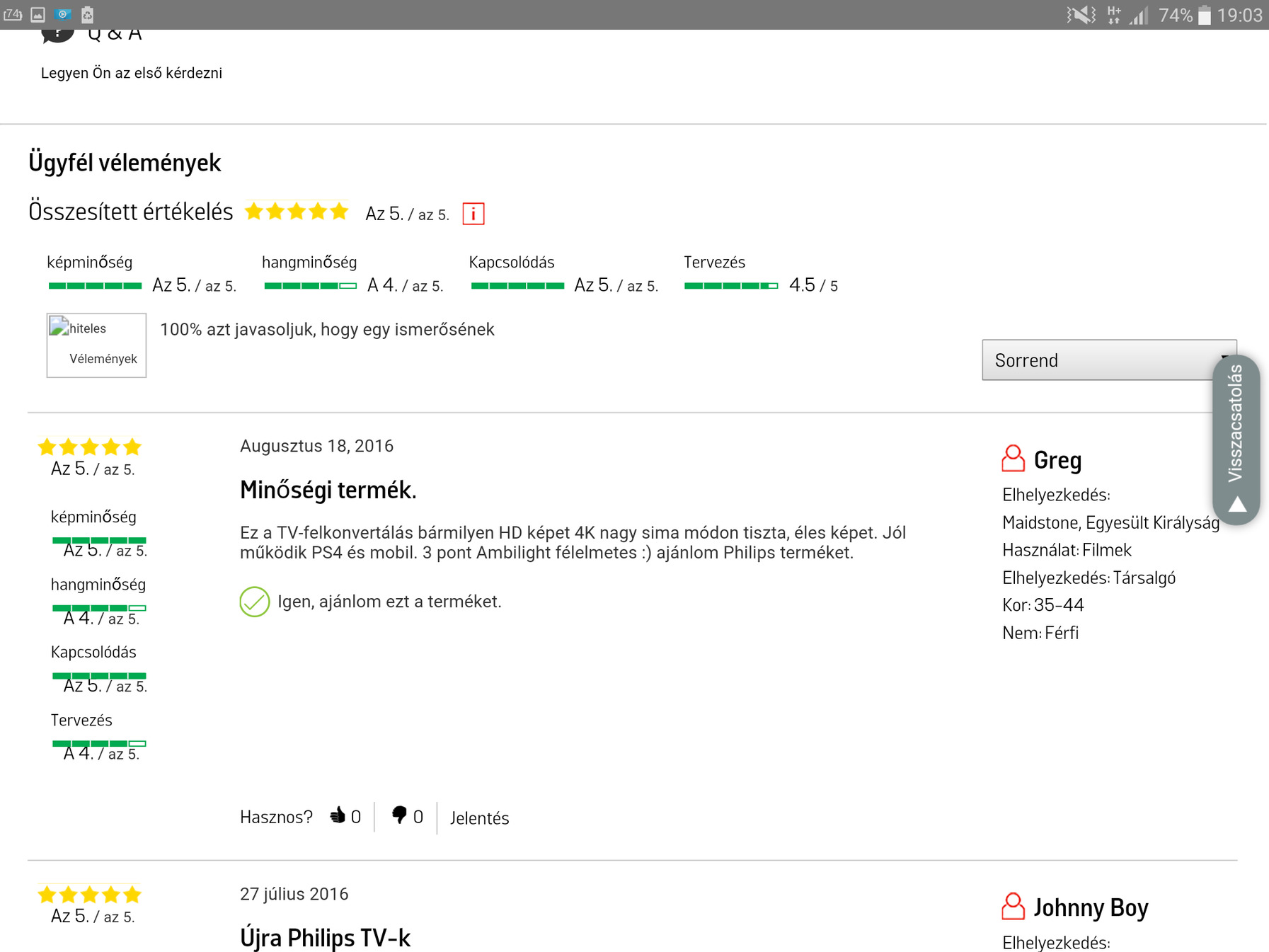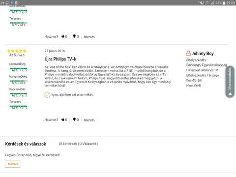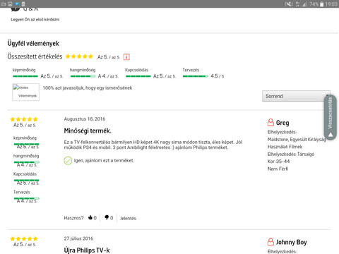 Egy tablet <> egy tv-vel. Messzemenő következtetést ne vonj le a dologból. Én még nem láttam olyan Samsung tévét amelyiknek a háttérmegvilágítása a Philips tévéim akármelyikével felvette volna a versenyt. Azonos árkategórián belül. Nekem fontos a kép minősége, és nem voltam elragadtatva az LG / Samsung tévék képeitől.