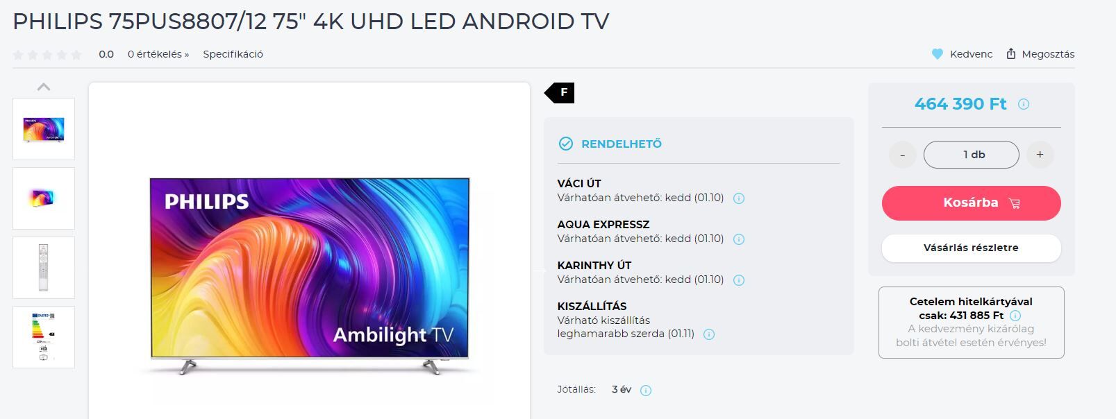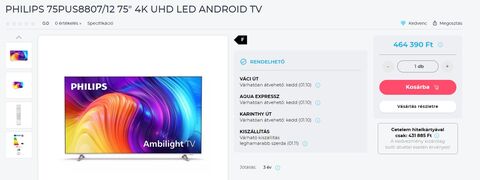 Igen, tudom, hogy a 75PUS8807 csak 3 oldalas, de jelenleg csak ez tudja az összes többit, ami azért jóval kritikusabb tulajdonság nálam, mint a 4. oldal. Szóval jah, most várok, akciót leginkább. Picit pechem volt az eladással, mert ugye a soundbar-os kombinálós akciójuk szilveszterkor véget ért és pont elsején vitték el a TV-m. Szóval abból így pont kimaradtam. -