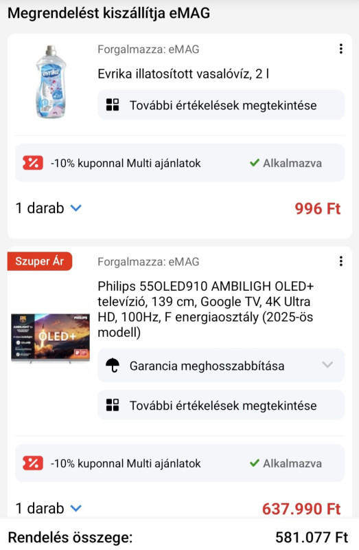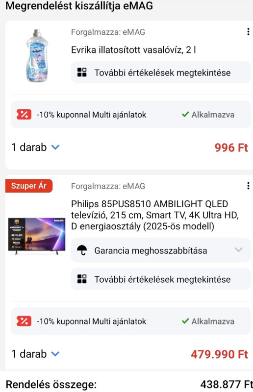Ami legjobb ár perpill az a 65MLED920 eMag multi kuponal 315e plusz szállítás.