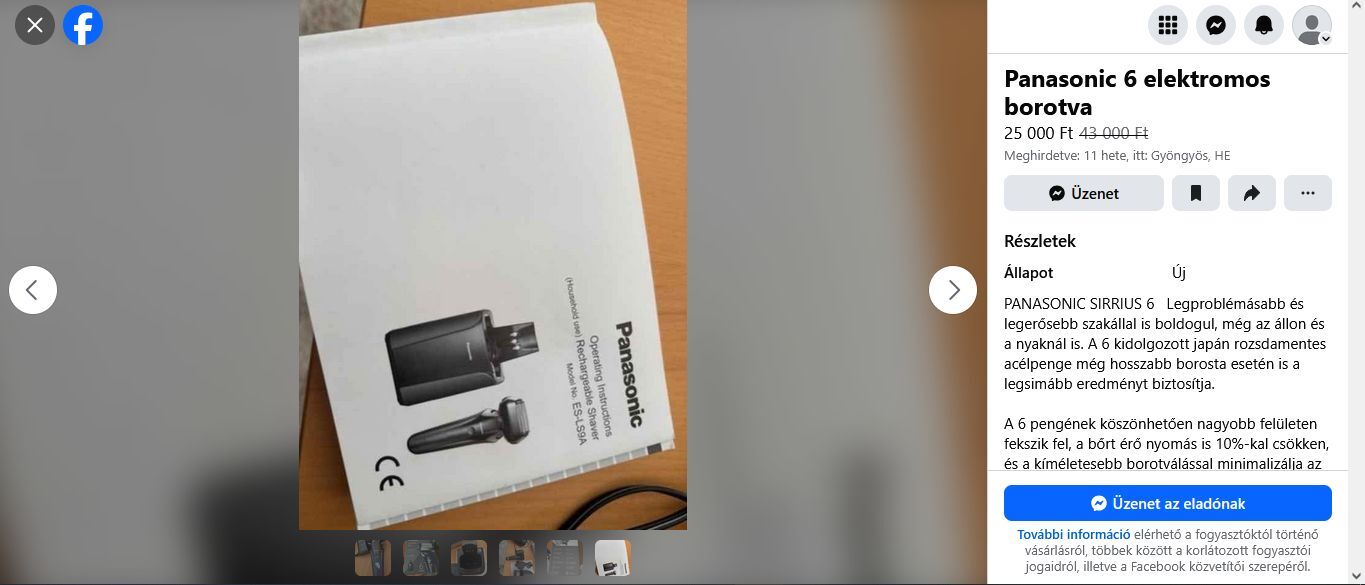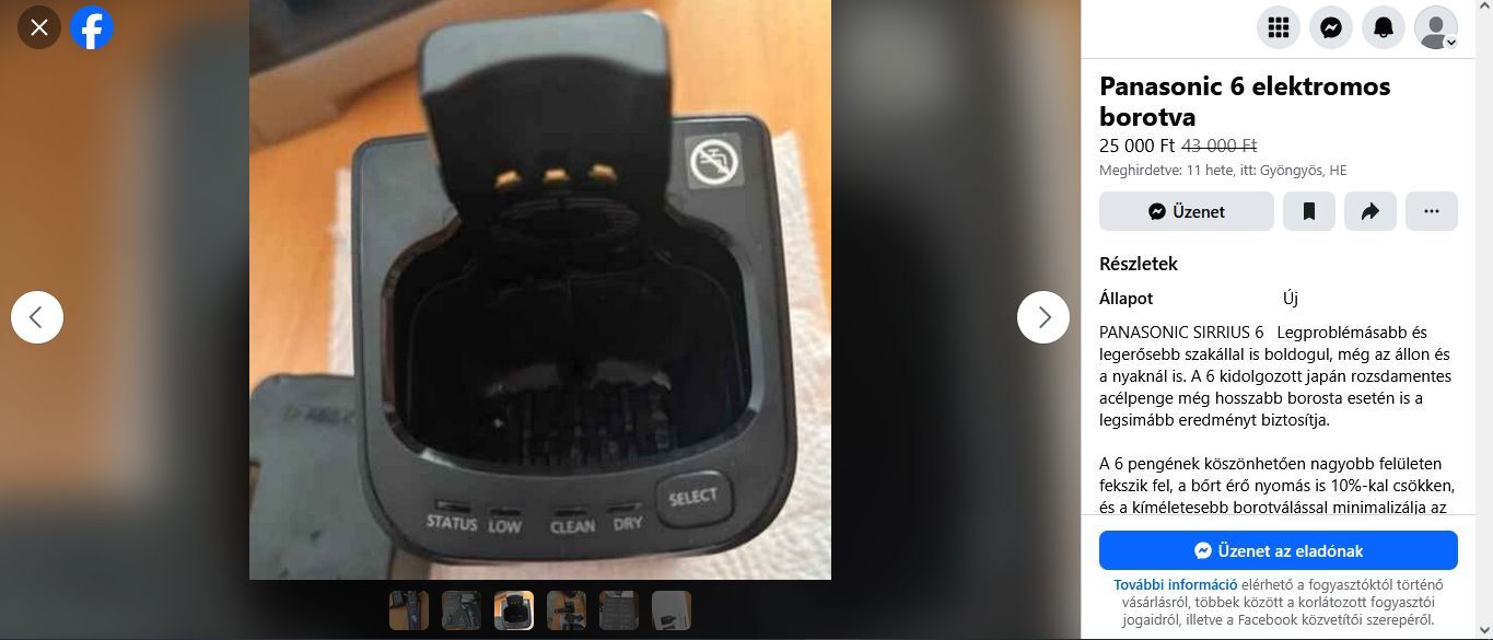 Fent van újra a f@szbukon a Pana borotva két hirdetéssel is, 28 és 25 ezres áron.