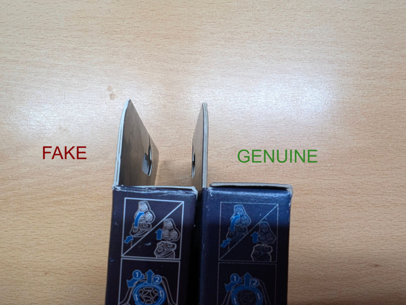 - A hamisítvény doboza sokkal vékonyabb kartonból van. Érdekes, hogy szebben van vágva, az eredetin a papír doboz szélei "szőrösek" kicsit.