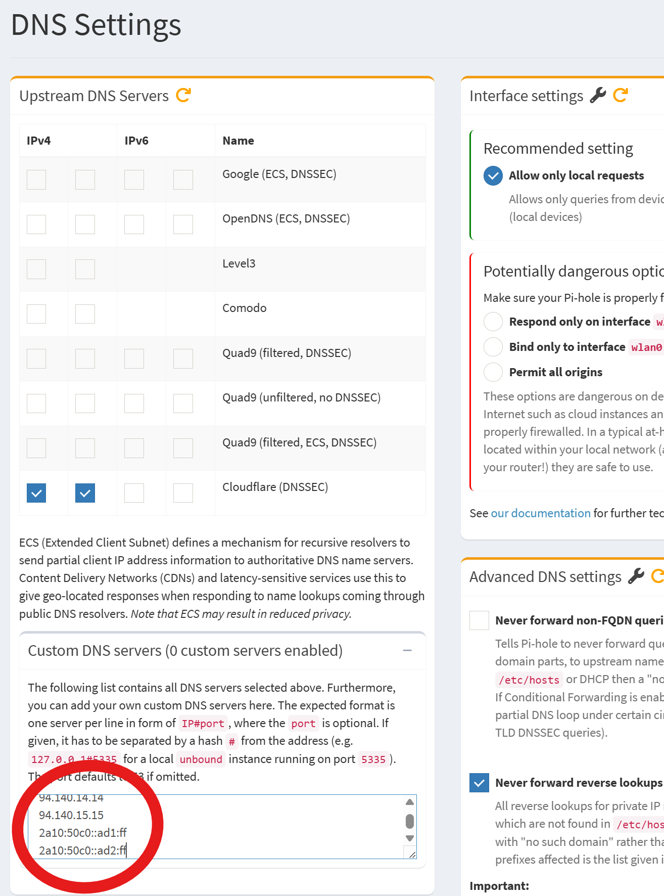 Meg néztem a linux-ot is, de azzal se jutottam előrébbPihole webes felületén meg van a settings->DNS