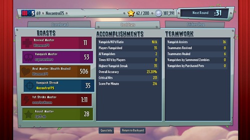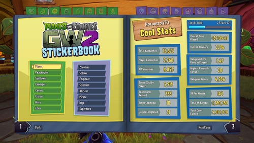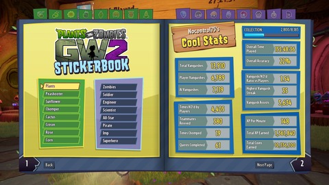 A legszembetűnőbb változás az első részhez képest a csonka menü, amely innentől kezdve csak alapvető funkciókat lát el (beállítások, kilépés), minden más feladatot egy interaktív, bejárható pálya lát el. Ez a kvázi mini open world térkép három részre tagolható: van egy kert a virágok részére, egy temető a zombik számára és a köztük elterülő csatatér, melyet a játék Backyard Battlegrounds-nak nevez. Ez a szabadon bejárható tér a gép által irányított növények és zombik szüntelen csatájának helyszíne, de a játékos számára további érdekességeket rejt, amolyan mini open world élményt kínálva: vannak elszórt kincsesládák, ezeket adott számú csillaggal lehet kinyitni (erről később) és vagy pénzt vagy valamilyen különleges tárgyat rejtenek, vannak ismétlődő rövid küldetések, egy lőtér, valamint egy hal, aki szintén csillagokért azonnali szintlépést biztosít karakterünknek.