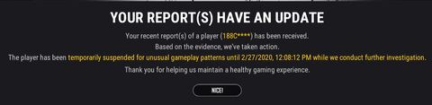 En olyanna talalkoztam, hogy jott az ertesites egy gyerekrol, hogy koszonik a jelzesem, kivizsgaltak, bannoltak. Na a kovetkezo jatekba ki lott le? Ugyan az a srac.. annyira banom, hogy nem mentettem le azt a report kepet.