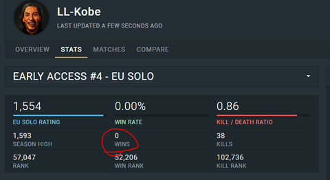 Szintén. Tegyük hozzá hogy ez nagyjából csak FPP-ben értelmezhető, mert TPP-ben hiába játszanál jól ha egy egész meccsen a fűben fekvő paraszt leszed mikor healelnél egy fight után. Jobb esetben hack / cheat nélkül szed le.