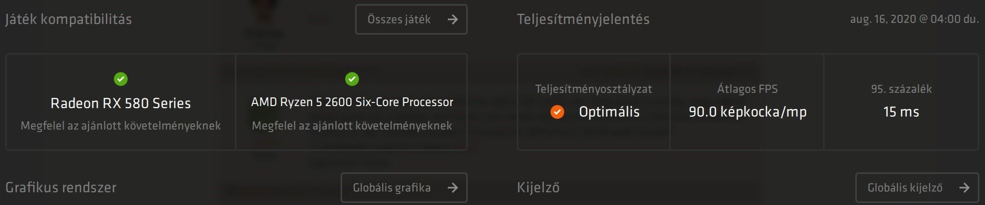 Ok! rx 580 ra meg ryzen procira van valami spéci beállítás amivel legtöbbet tudom kihozni? qhd monitoron 2560x1440 most olyan 75-110 fps csak az elsimítás meg a látótáv van ultrán a textúra médium a többi alacsony.