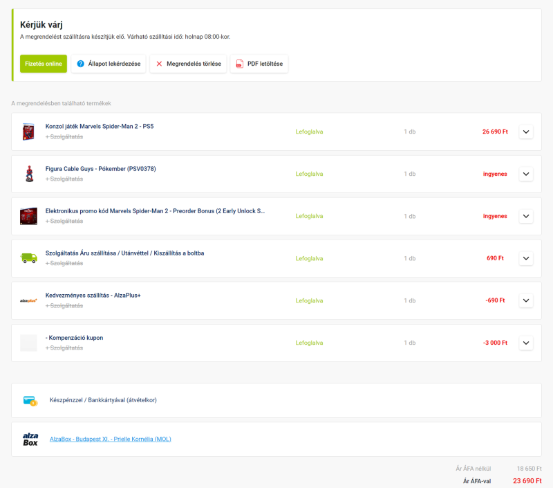 Alza szerint lefoglalva minden Spiderman2 tétel, kézbesítés időpontja pedig 10.20 8:00. Ezek szerint jön mégis csak megjelenésre a pakk.