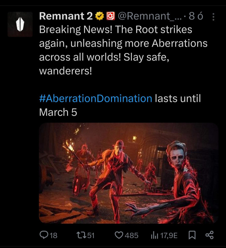 Más is tapasztalt Remnant 2 frissítés után leállást?Amúgy március 5-én jön valami, lehet a dlc-2?