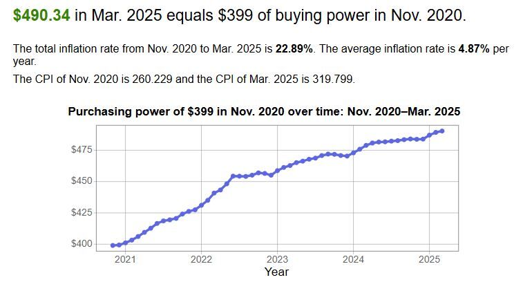 Ha jól emlékszem, az eredeti MSRP $399 volt a digital-ra mikor 2020 novemberében megjelent. Ha csak a dollár inflálódását nézem, akkor így néz ki: