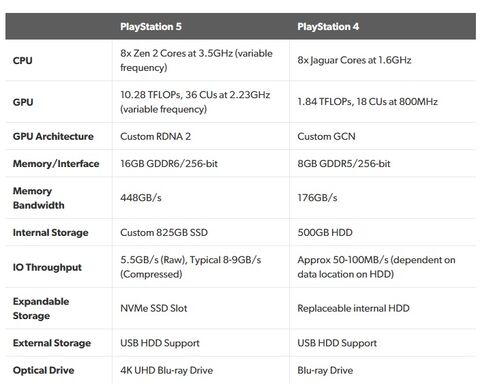 Official #PS5 Hardware Specifications CPU: 8x Zen 2 Cores at 3.5GHz (variable frequency) GPU: 10.28 TFLOPs, 36 CUs at 2.23GHz RDNA 2 RAM: 16GB GDDR6/256-bit Storage: Custom 825GB SSD Optical Drive: 4K UHD Blu-ray Drive Expandable Storage: NVMe SSD Slot Via @digitalfoundry. Bocs, most látom, hogy már volt.