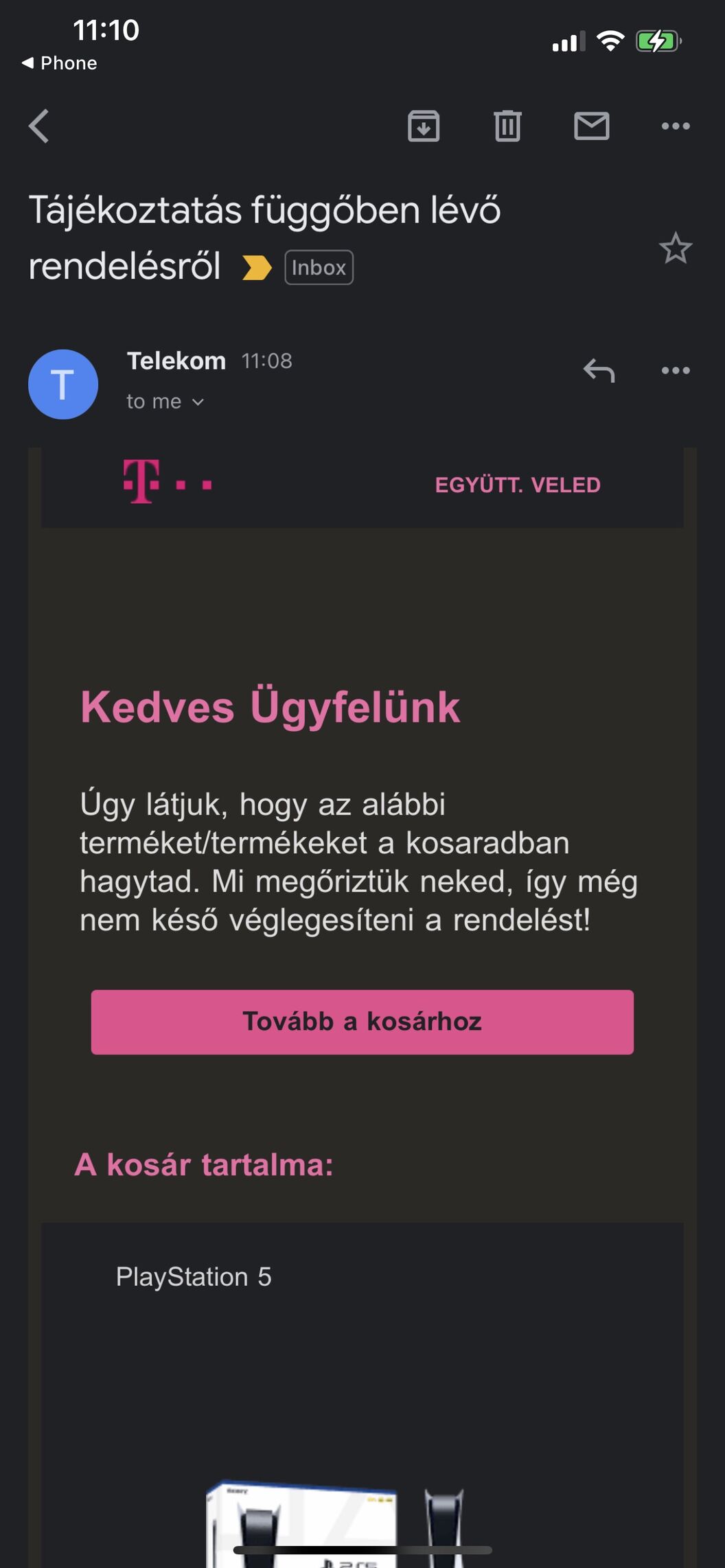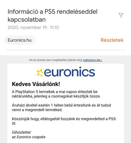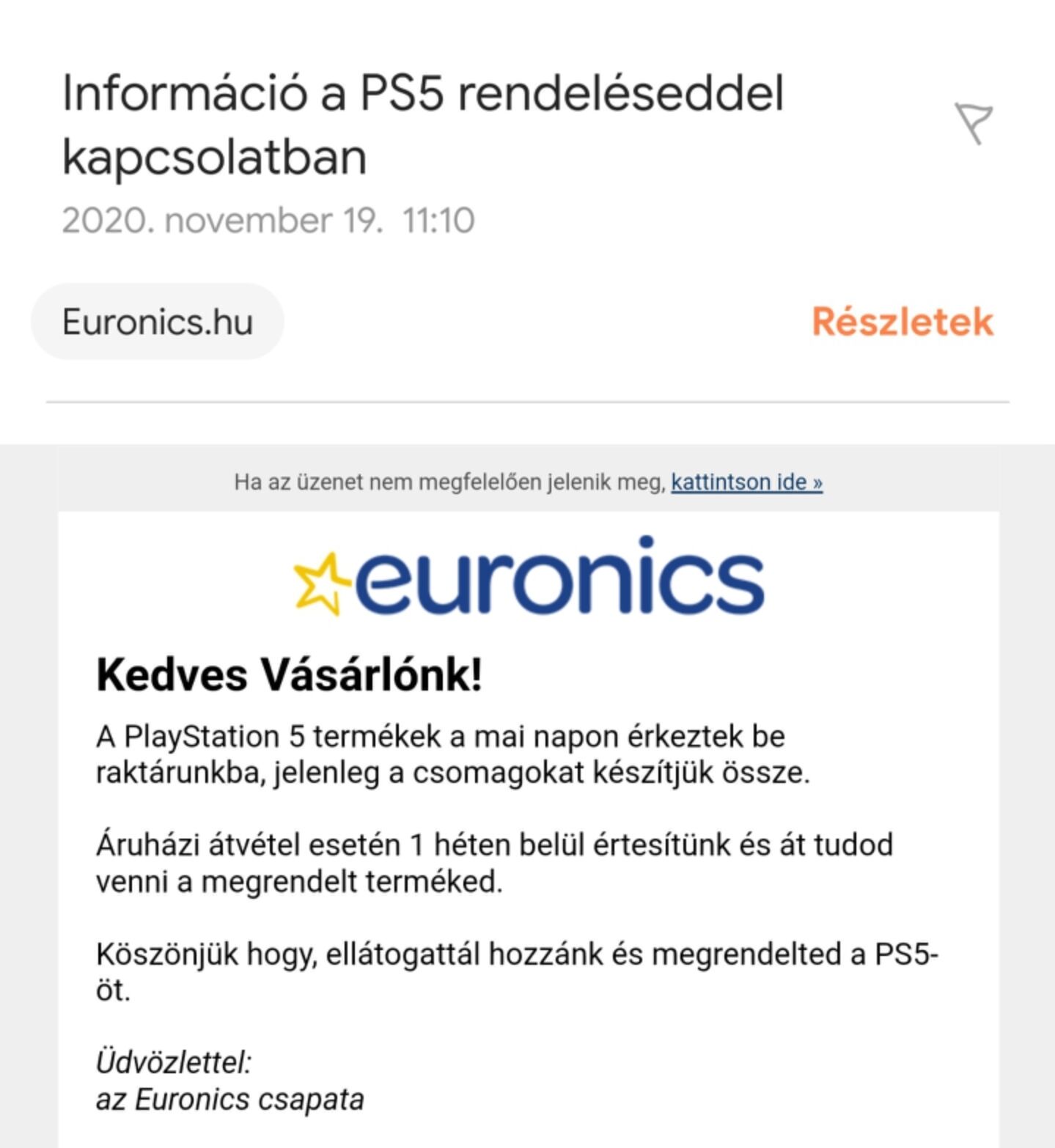 Az euronics most küldött levelet, hogy megjött a PS5 és a következő 1 hétben mehetek átvenni.