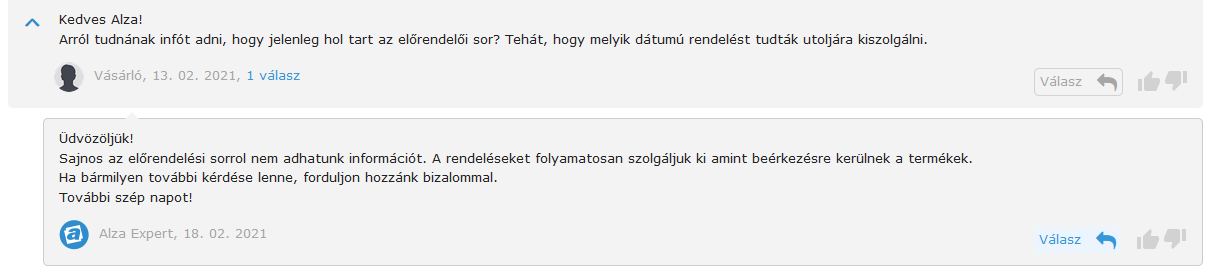 Srácok, Alzánál van vmi sorrend/időpont lista mint KVnál ? Semmire nem reagálnak, ha KVnál rendelek mar rég nálam lenne, ennyivel kevessebbet kaphat az alza ?!