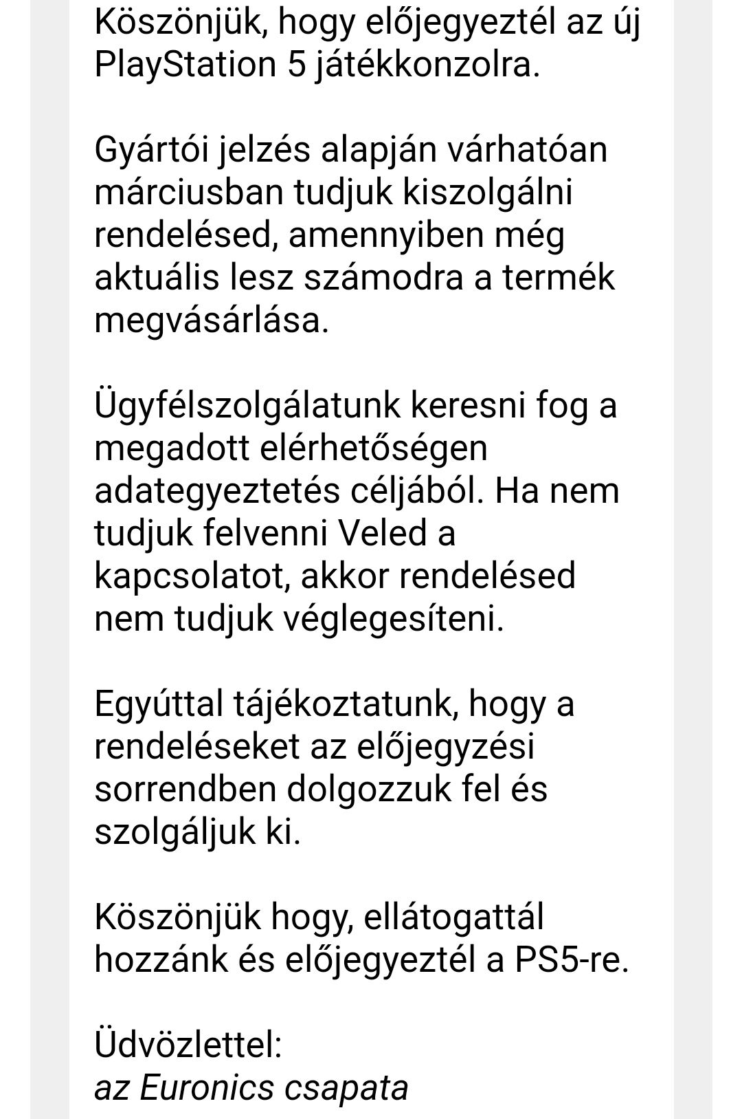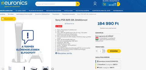 Valaki be tudná linkelni a megrendelt PS5 adatlapját az Euronics oldalán?