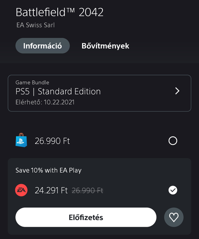 Egyelőre elméleti kérdés. Az működik, hogy csak a BF miatt előfizetek 1 hó EA Play-t (1230Ft) és megveszem kedvezményesebben a BF-et? Vagy ezek után fent kell tartani az EA Play előfizetést, hogy induljon a játék? Alig 1500Ft-tal lennék beljebb, de ha két kattintás helyett hármat kell ezért csinálnom, akkor megéri azt a másfél percet.