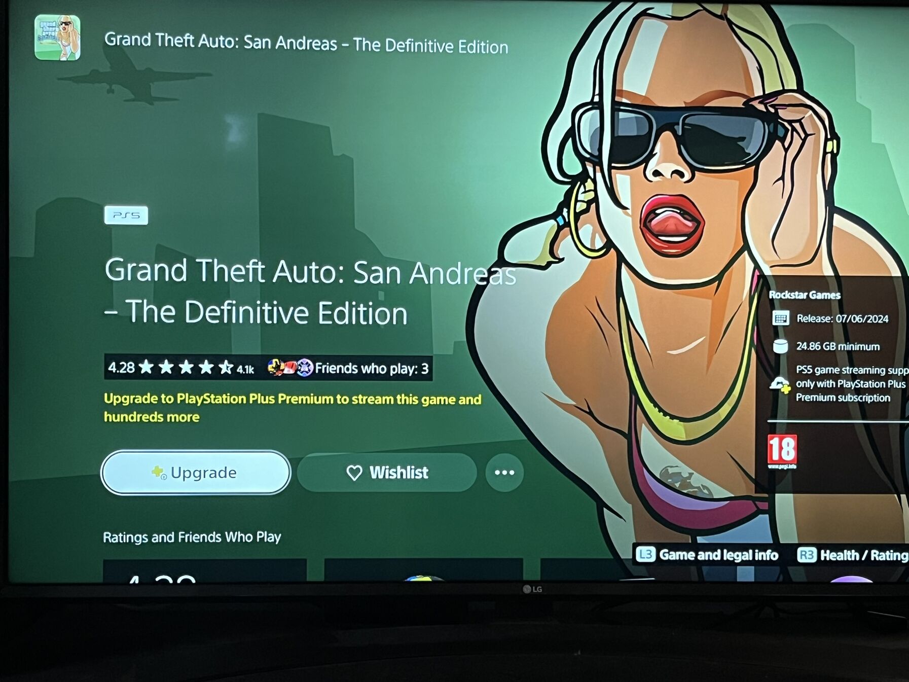 A GTA SA - The Definitive Edition ugyan benne van PS+ extrában, de konzolról nem lehet letölteni a játékot, mert azt akarja, hogy upgrade-eljünk Premiumra. PS5-ről nincs workaround, hanem mobilról kell hozzáadni a fiókunkhoz a játékot. Utána már működik.