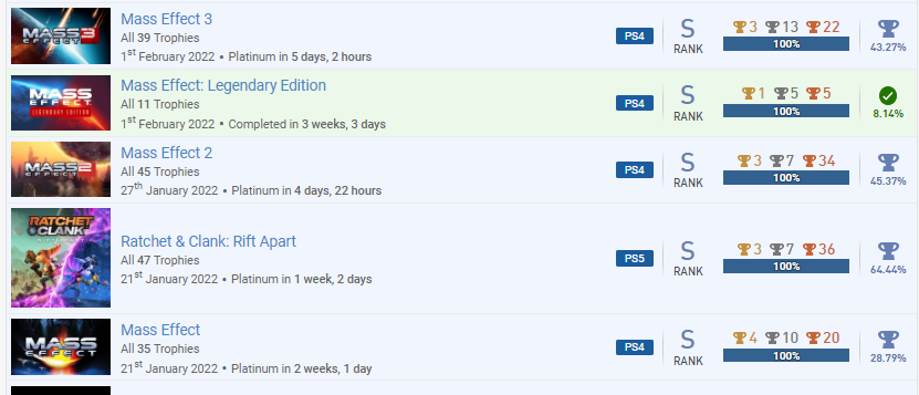 Évekig terveztem a platinát megszerezni, mert a valaha készült egyik legjobb játéknak tartom úgy, hogy se a westernt nem szeretem, se az open world nem a szívem csücske (az első rész is “egynek jó volt” kategória nálam), és már csak 20 körüli gold medal hiányzik, de azóta elengedtem a trófeázást, a framerate is zavarna, úgyhogy inkább csak a becses emlékét őrzöm.