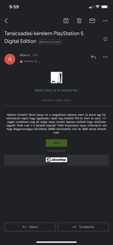Irok az Alza-nak, hogy mivel iden már biztos nem kapok PS5-t , az elore kifizetett osszeget. ( teljes osszeg ), szeretnem visszakérni DE a foglalast azt szeretnem megtartani mert biztos, hogy venni akarok konzolt, csak 09.17.-e ota ne uljenek már a penzemen.